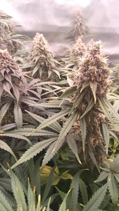 Into week 7 and all is good. All are in flower and swelling out very nicely. Ethos OG Kush is frosty and smells like a citrus grove. Barney's Purple is an absolute beast. Her stretch was impressive for an autoflower and she is almost 48in high. Her flowers are swelling nice and she has become much more fragrant in the last week. Fastbuds Zkittlez is frosty and swelling nice. She is also very fragrant, smelling like sweet candy. Seedsman Pink Kush CBD is doing well, beautiful dark purple flowers and leaves. Lights are still 18/6. No nutes. Monitoring trichomes daily looking for changes in color and clarity in preparation for harvest.