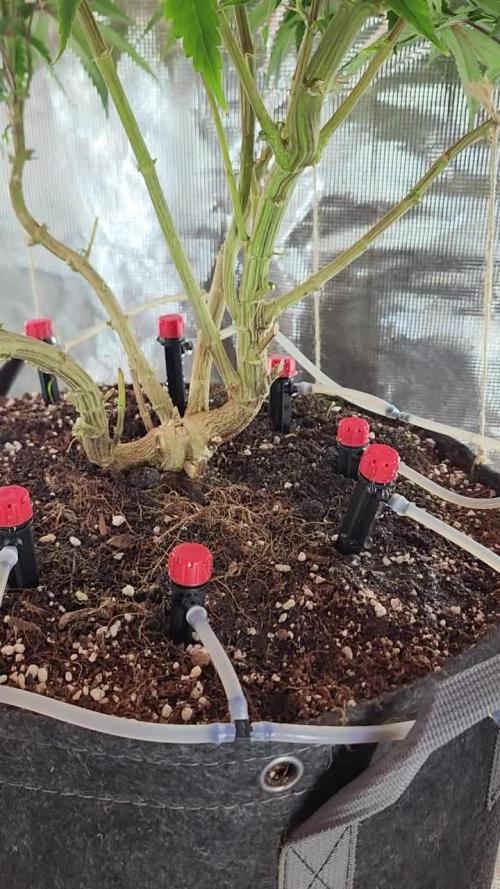 02/23 (M) (Pre-Flower) flipped mother into flower last week - flushed with clean water for 2 days then began giving flower nutes in small doses for now - still feeding off the drip lines seems to be working as planned. Feeds will become more often (once/twice a day - 1 min feeds. 02/23 (C) - 7 of the 15 clones have rooted successfully with thick multi strands in each clone - Green color starting to come back as well - Have begun applying nute feeds to help recovery - Will give the other 8 sometime to begin rooting but if nothing happens in the next week then I will keep the 7 rooting now and cull the other 8.