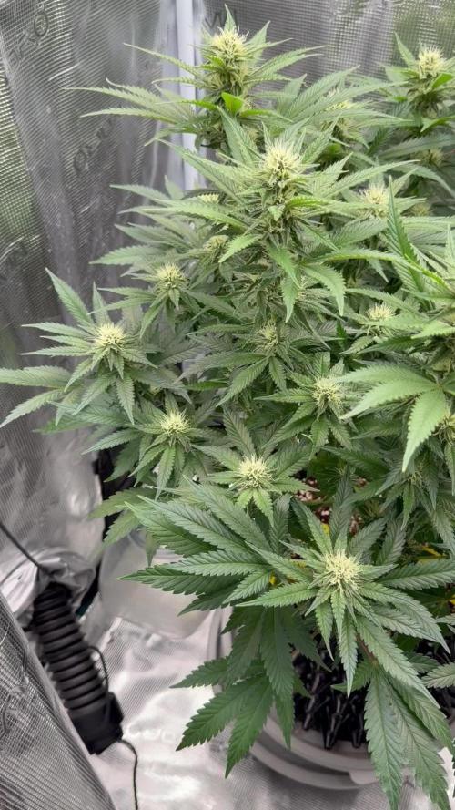 * Starting this week with a final 🍃 defoliation, the plants responded really great after every training (LST, defoliation, lollipoping), eating and drinking like real champs 🏋️‍♀️ 🧗‍♂️. * Humidifier 🌪️ makes a real difference, through low humidity (40%-50%) we achieved better VPD -> more transpiration -> faster growth, the plants enjoying it. * Gemma's crystalize NPK for bloom, collaborates with the others boosters with no problem (reccomend separate mixtures when feeding). ℹ️ You can see the response on the plants after one day --> updated photos ℹ️ Later this week : The plants eating like beasts, watering almost every day, Buds progressing smoothly, Smells too and the canopy is pretty good in this (0.80m ×0.80m ×1.60m tent size) we are impressed with transpiration rate, game changer the humidifier present.