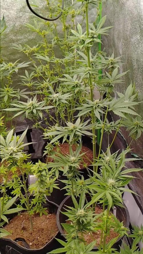 8/14 Everything looked beautiful this morning. Seems like I've got the watering schedule down better. I do have one gmo that looks hungry so I need to increase nutes. At least on that plant. Toasted toffy has little spits that could be water marks, pests or septoria. I don't think it's septoria. In the pastvi lost far more leaves when I had septoria. I've been crazy busy. I'm surprised things are going this well. I need to put up the final supports so I can add to them once I've got big heavy buds. I was really stoked to see everything doing so well. The plant in the 50gallon is the furthest in flower. I'm so grateful to have the ability to grow high quality cannabis for myself amd my wife. There's nothing quite like it. That hash I made turned out great. I think I'll press it today. Supports will be done this week. Saw a few aphids on the plant I cut down. Earwigs aren't here this summer or there would be NO aphids. Plus when I cleaned out the insides this morning I found some dead leaves WAY in the middle by the stalk. They would've eaten that shit if they were here. Birds and other predators seem to be keeping pillars at bay. I'm not seeing the damage and when I do sfind one it's absolutely tiny like a newborn. I'll think about whether I need to spray BT. 8/15 That fucking cancel button always fucks everything out. I was done no I need to start over. Didn't water last night. Found pm on my gmo in the 30. Interior of the plant. Should've defoliated better and earlier. Oh well. I'll treat with k bicarb or plant doctor. I'll have to think about it. Other plants are looking good. Well they all are. I just hate pm. I can't isolate it due to local laws so it is what it is. Nothing I haven't dealt with before. Watered today. The middle gmo in the 30 got 1.5 gallons. The other plants each got a gallon. Including the one in the 10gal and 50 gal. Its supposed to rain but only like .1. I also chose to feed today. All plants got a gallon. I DID NOT WATER THE EVENT HORIZON IN THE MIDDLE AND THE SHERB PIE AS THEY WERE PRAYING AND HEAVY. I need to get these supports up. I'll update as I go. Oh and one thing I remembered is that, I didn't properly sanitize the trellis nets I installed on the plant that has pm (non visible today but still). I harvested the plant that used that bet last year was harvested in two stages. The bottom I let go way later and ended up with a little pm on the stuff I left for hash material and it got some pm. I wonder if that's whete this came from. 8/16 Death in the family this morning. I couldn't decide if I should use organocide plant doctor or not. It's a systemic It's been discontinued and reformulated. It's a systemic fungicide. Instead I mixed two tsp potassium bicarbonate with a little dawn in a half gallon mister. I used gloves and defoliated everything that had pm on it. I checked the plants next to it and luckily it hasn't spread yet....but it will. I feel safer using the k bicarb. I'll do more research and try to find the best way to tackle this. I don't want to get rid of the plant and due to local ordinance I can't isolate it. If I can keep it to this one plantvthat would be fine. I'd just use it for extracts. So glad I didn't use all that netting and put up tjosr supports. I'll need to disinfect them if I decide to use them. We'll see. Plants are coming right along flowering. WENT BACK OVER AND DEFOLIATED A BUNCH OF fan leaves and interior stuff to promote airflow. Still saw pm on that plant u had treated earlier with k bicarb. I can't isolate due to laws and I'm not willing to discard this massive monster cropped plant. So I'm going to treat it. I started by removing everything infected and improving airflow on that plant and all the others. I didn't make it to one event horizon. I plan to treat the infected plant with Organocide Plant Doctor since its what I have on hand and I've had good luck. It's a systemic. After I treat the one plant and see that it didn't hurt the plant I'll use a preventative dosage on the other plants. I've battled wpm several times. This is something I'm very familiar with. What sucks is it's totally my fault it happened due to grower error. This has set back me puttingvup my supports as well. Plants look good woth a haircut. Also the toasted toffy had some leaves removed with spots that looked like septoria. I think nutes havecreally kicked things in gear. Now there are little buds on plants. 8/17 BAGS still seemed heavy so I didn't water. It's been MUCH cooler. It's 63 at 9am. It would normally be 80 by now so maybe they aren't using as much water. I watered the the toasted toffy I missed last round but the Sherb Pie still had weight to it. I also watered the GMO on the far side and the one in the 30 as the seemed a little lighter. I looked in and I couldn't find a SPOT of powder mildew on the plant! I know it will come back but on this 100% rh day there isn't a spot I can find! I'm going to go check on them later today. Do some more defoliation and treat the plants with Plant Doctor to try to mitigate the spread of the P.M. Very suprised the k bicarb worked like that. WENT BACK OVER AROUND 11. I WATERED THE TWO THAT DIDNT GET WATERED LAST TIME. THE EVENT HORIZON AND THE SHERB PIE. IT WAS COLD AND OVERCAST. TEMPS HAVE BEEN MUCH COOLER. SOON AS I WATERED THE SUN CAME OHT AND THE TEMP WENT UP. I WENT THROUGH THE PLANTS I MISSED AND SEFOLIATED LEAVES AND INTERIOR BRANCHES TO INCREASE AIRFLOW. SURPRISED TO STILL SEE NO PM WITH 100% HUMIDITY. I WENT THROUGH EVERY PLANT. ILL NEED TO GO TJROUGH AGAIN BUT TJIS IS MUCH BETTER. THE TOASTED TOFFY THAT MAY HAVE SEPTORIA I WILL TREAT TONOGHT WITH PLANT DOCTOR. I REMOVED ANYTHING LOOKING INFECTED. I LSTed THE BIGGEST BRANCHES WITH CLIPS TO THE BAG AMD TWINE. SO AIRFLOW IS MUCH BETTER. I THEN REMOVED A BU CH OF THE MIDDLE. I COULD TAKE MORE BUT ON OUTDOOR HARVESTS THAT LITTLE STUFF GOES IN EXTRACTS. I PUT A FEW HOURS IN TODAY. IM GOING BACK AND ILL TEST THE PLANT DOCTOR ON THE TOASTED TOFFY. BUT 