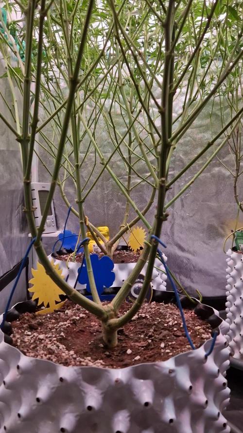 Maui Waui is from seed, and looks pretty wonky here, it got a bit out of hand during veg as I didn't have a screen in there. The seed has been vigourous though and I have high hopes for it being the only pure sativa in the bunch,