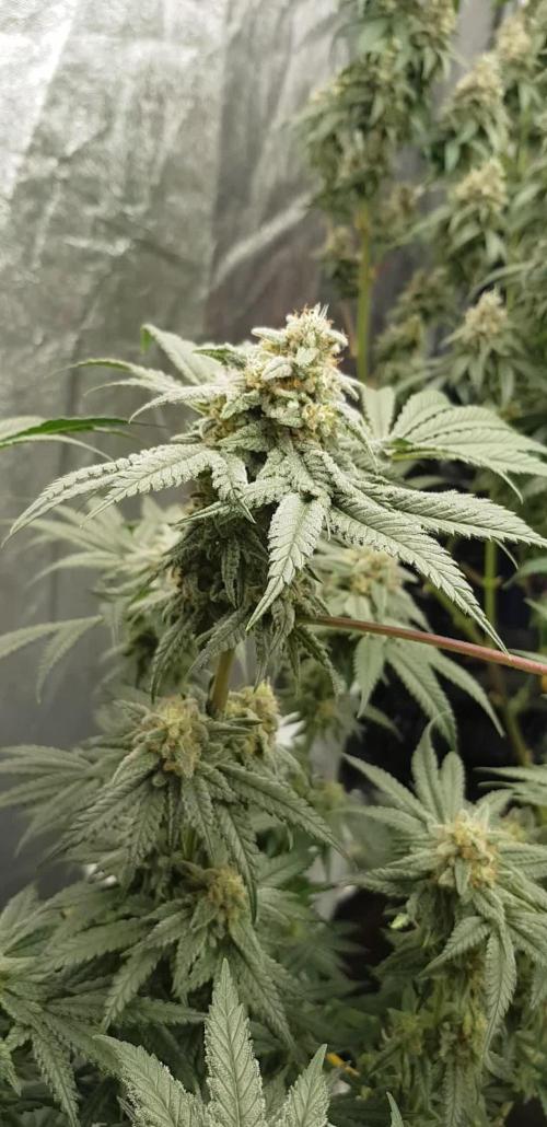 Apart from that, wish the SCP would start to set flowers better, they're still looking a bit weak up top but stems appear to be stacking. Hopefully now that last push happened (and hopefully all pushed out!!!!), they will concentrate on buds only...this may be a 10+ week-er - which again, cant really afford as growing tent is drying tent!!! Its supposed to be a 75% indica so would expect bigger/quicker flowering but not showing too many symptoms of being mostly indica...maybe not quite a fully stable genetic line yet?? I dunno but its running slower like a sativa - even with the flower initiator and the late push would maybe imply that too??? Funnily, its tent mate, Red Hot Cookies is 60% sativa and has set flowers quite well so far - showing colour to the tips of the pistils...just wish it would start turning pink!!!
