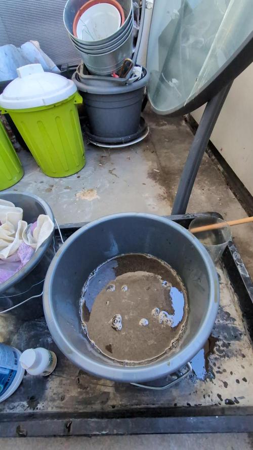 18.10.25 — Pulled about 1L of the finished FERMAKOR extract into a 5L bucket and added roughly 2L of clean water. Let it sit for a bit to calm down and cool off before touching the pH.