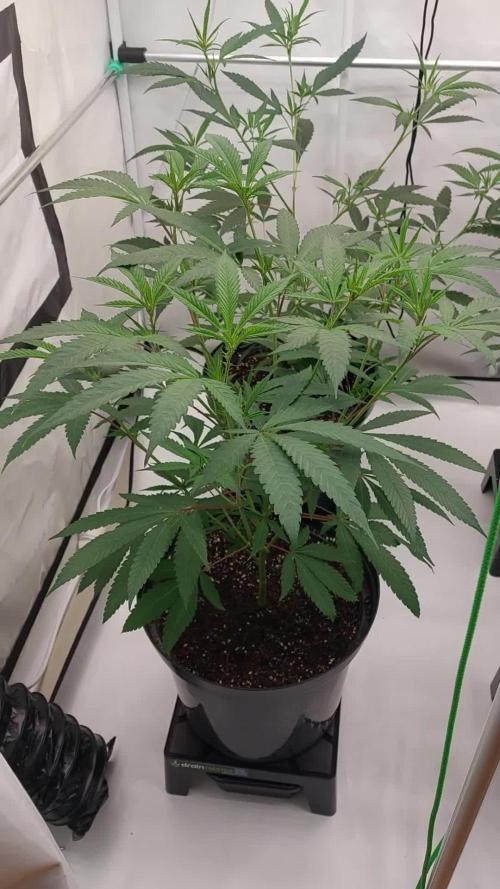 OGK is bouncing back beautifully from the topping I did last week. She went from one main stem to two strong, sturdy branches, and I’ve been LST'ing them to shape the structure. Originally, I topped her thinking she was stunted—I almost gave up on her. But man, I’m glad I stuck it out. She's looking really solid now. I gave her a top dress of Gaia Green All Purpose and Power Bloom (since she’s been in soil about 30 days), and backfilled the pot since it was a little light on soil. Also did a light trim to remove some oversized fan leaves. Overall? She’s thriving.