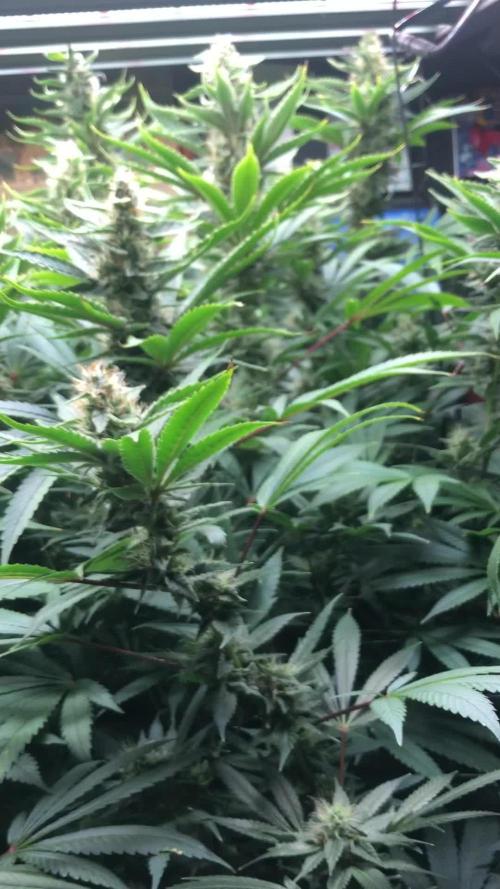 SOME BUDS looks like they're getting a lack or excess of nutrients by the yellow parts of the leaves, but actually, at those buds, I R.I.B pruned them. (R.I.B stands for "Right, I burned em" or something like that)