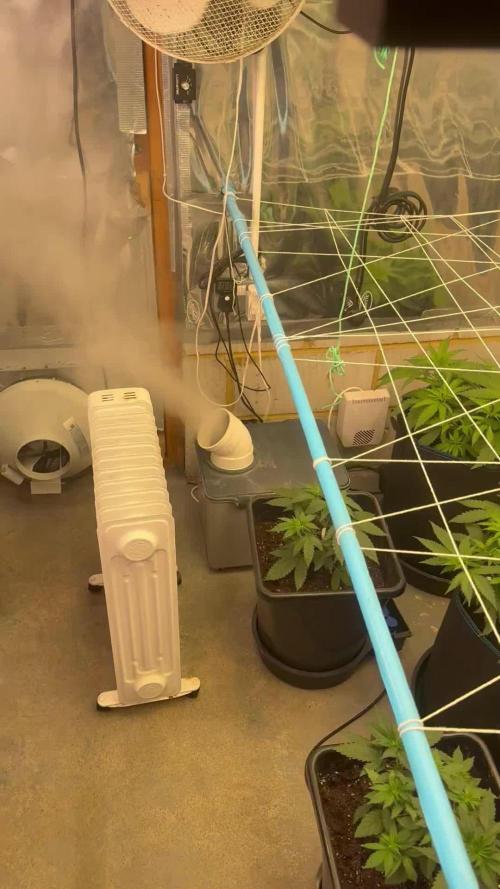 Die Tropfbewässerung läuft konstant, und das Canna Coco A + B Schema wurde auf 4 ml/l erhöht. EC liegt bei etwa 1.4, pH bei 5.8–5.9. Die Pflanzen reagieren ideal auf die Dosierung, keine Anzeichen von Überdüngung oder Lockout.