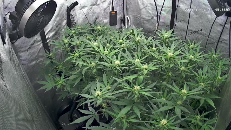 Having some trouble getting the heat down today. It's stuck at 80° and that's not good. No clue what else to do. I opened my door to let some 45° air in and that did nothing. Opened the tent door and it only dropped to 75° instead of the normal 70° to 72°. No changes whatsoever. I don't get it. Does something happen in the flowering period where the plants turn themselves into heaters? My heater is off, the humidifier is off. The dehumidifiers are on, but they've been on for a week or so. No changes there either. Please advise. Lol.