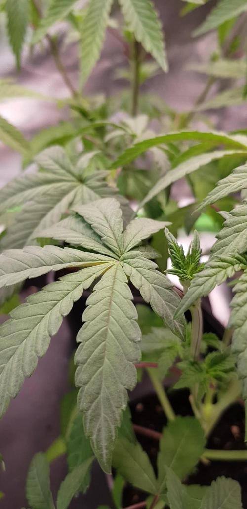 Been a hot week but the girls don't seem to mind,90s in the day 82ยฐ at night and sticky,muggy weather. Their leaves all pointing โ๏ธ,lets me know they are happy โบ๏ธ .watered with plain water they were pretty dry pots weight was very light. Will feed and water in in morning sleep well and medicated๐