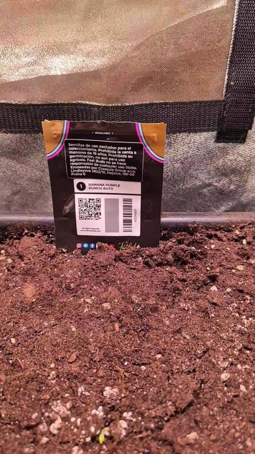 Den Samen habe ich direkt im 11L Endtopf keimen lassen, um die Pflanze nicht unnötig zu stressen in der kurzen Vegetationsphase. Ich habe die Erde zuvor mit 0,5 g Greenhouse Feeding Bio Grow pro liter Erde vorgedüngt indem ich das Granulat direkt mit der Erde vermischt habe. Danach habe ich ein kleines loch in die erde gemacht wo ich ca 0,1 g Mykorrhiza rein gestreut habe, danach habe ich den Samen direkt da rauf gelegt und das loch mit Erde zu gemacht. Ich habe direkt die Ganze Erde einmal angegossen mit 1L Wasser mit 2 ml Calmag von Biobizz und 0,5 g Enhancer von Greenhouse Feeding der mitunter die Keimrate erhöt. Die 50W Lampe habe ich auf 80% 70 cm über der Erde Wie man auf den Bildern erkennen kann ist sie in einer Woche sehr gut und schön gewachsen.