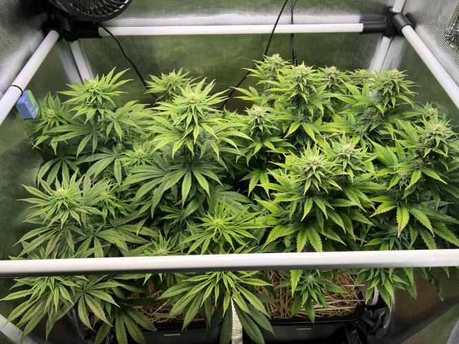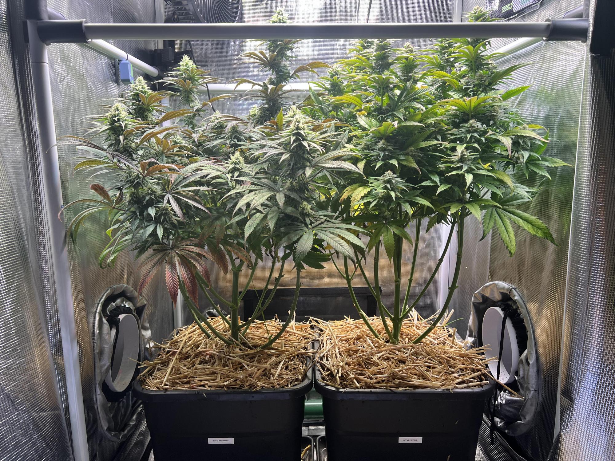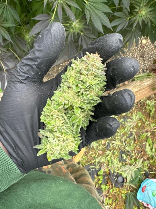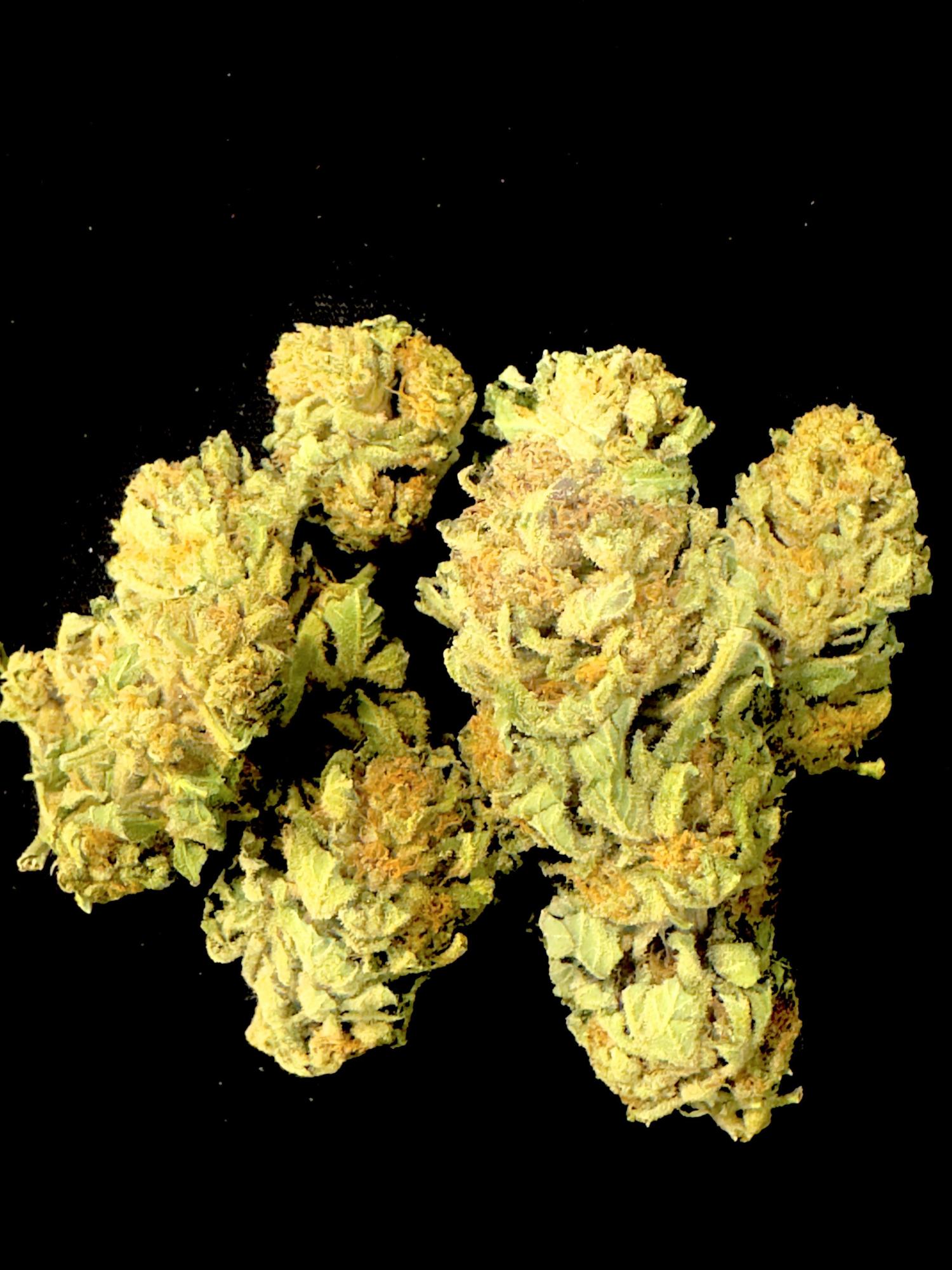 Apple Fritter is a delicious hybrid strain with equal parts Sativa and Indica features. Created by crossing Sour Apple and Animal Cookies, this variety is the one for evenings when you need to relax and end the night on a good note. The high THC concentration in the range of 22-28% is often sought for its medical properties on conditions such as pain, insomnia, mood swings and stress. The high from Apple Fritter hits hard and fast. Right from your first exhale, your mind will be taken over by an uplifting sensation that will run away all negative thoughts. Soon, you’ll reach new heights of euphoria, making you feel happy and tingly. The body high is relaxing and removes all the pain you might have. Your muscles will relax and slow you down, without making you lethargic. In terms of flavor, Apple Fritter tastes just as it sounds. Your first toke will fill your mouth with a fruity apple flavor along with sweet vanilla notes. The earthy and herbal aroma accentuates the cake touches. If you plan on growing your own Apple Fritter, then you should expect to harvest in about 8 to 10 weeks of flowering. Thriving in warm and slightly humid climates, this strain can reward you with up to 500g/m2 indoors and 600g/plant in outdoor settings. In the end, your yields will be beautiful spade-shaped buds with purple undertones and bright orange pistils.