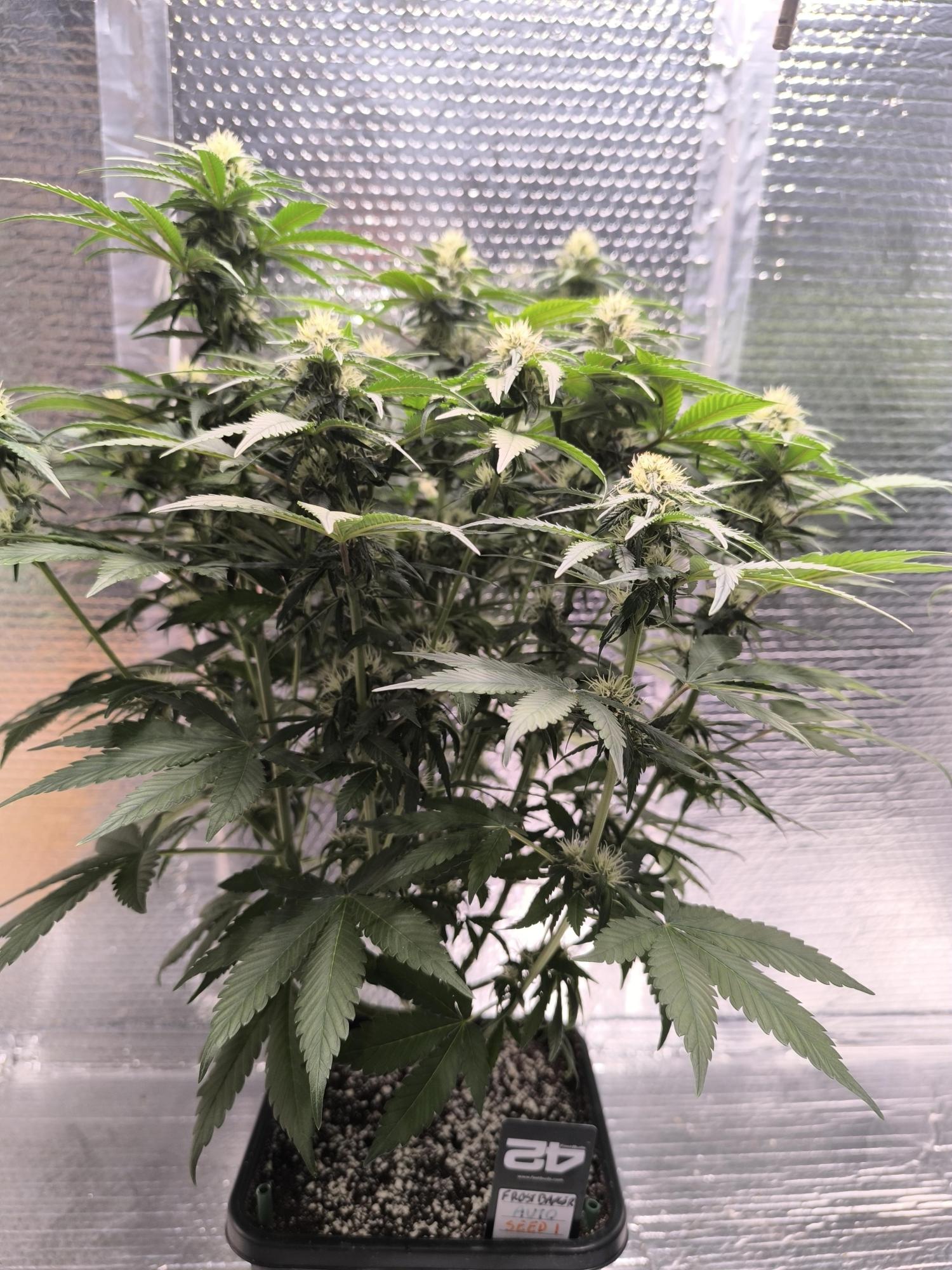 Meet Frostbanger Auto, an autoflowering and Indica-leaning hybrid packing a staggeringly high THC content averaging 29%, making this one of the most potent strains on the market. It was created by Fast Buds through crossbreeding Gorilla Auto F6 x Bruce Banner Auto F5 and Sour Diesel Auto F5, three equally iconic strains. Growers must know that these difficult-to-grow plants will pose specific challenges in terms of environmental control and nutrition, making them best suited for cultivators with some experience under their belt. The flowering cycle is short, averaging only 50 days, and yields are usually around 300g/m². The Frostbanger Auto flavor and aroma are both mouthwatering with a delightful combination of sweet, fruity, and flowery notes. The high is mainly Sativa-driven with uplifting and happiness-inducing effects that lead to euphoria and a general sense of well-being. You might feel sociable and talkative, but too spacey to say something. Following this surge of energy comes a deepening sense of relaxation, leaving you sedated and completely at ease with the world. Due to its potency and these long-lasting effects, medical patients hail Frostbanger Auto for treating chronic pain, stress, and even depression.