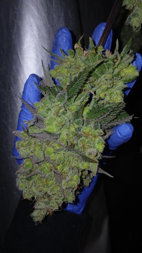 GG4 Sherbet FF is a heavily Indica-dominant hybrid powerhouse boasting a high average THC content of 27%, so this strain is best suited to experienced consumers. Fast Buds achieved it by crossbreeding Gorilla Glue and Orange Sherbet Auto. These visually striking plants pose growers with many challenges if bringing out their full potential is the aim, as they require meticulous attention to nutrition, lighting, and humidity levels. After approximately 73 days of flowering, knowledgeable growers may expect generous yields averaging 400g/m². The GG4 Sherbet FF flavor is rather complex, with sweet and fruity notes dancing on a bed of nuttiness and caramel. The aroma adds even more interesting flavors with layers of wood, pine, and mint. Expect a high that will bring complete relaxation to both body and mind. Your mind could be soaring towards euphoria in the beginning, but this is soon tempered by a deepening sense of tranquillity and peacefulness, enough to turn the most restless person into a satisfied, sleepy, and couch-locked human being. Due to these long-lasting effects and its potency, GG4 Sherbet FF is often chosen by medical patients seeking relief from chronic stress, pain, and anxiety.