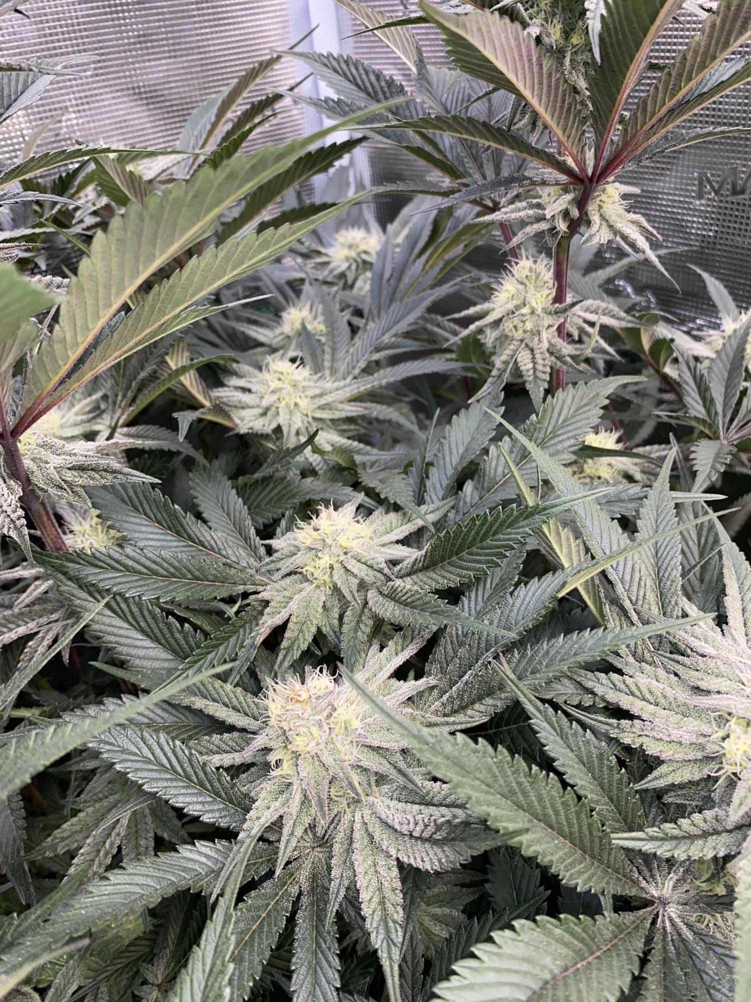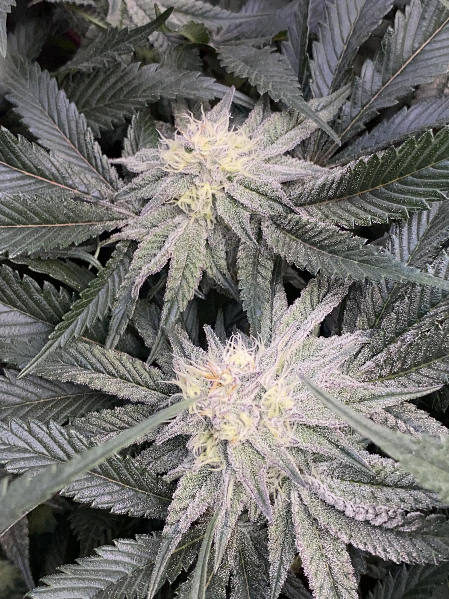 As a slightly indica-dominant hybrid with a balanced but potent high, Gorilla Zkittlez packs a powerful punch of stimulating cerebral effects blended seamlessly with blissful body relaxation. This GG4 x The Original Z (AKA Zkittlez) cross delivers a powerful high that’s best for cannabis consumers experienced with stronger strains. Gorilla Zkittlez is a creeper, with an onset of effects that start slowly, infusing the mind with an uplifted and happy head high that eventually becomes a full-on state of euphoric bliss. This energizing cerebral euphoria inspires a creative, carefree mood that’s stimulating and relaxing at the same time. As effects settle in, a soothing physical calm comes over the body, creating a relaxed, sleepy sedation that’s perfect for slipping peacefully into the last hours of the evening before going to bed. The funky fruity flavor profile of this heady strain is as alluring as its effects, with a sweet, creamy tropical taste that blends notes of tobacco, chocolate, and caramel with pungent diesel undertones. Its aroma is somewhat earthy, with a spicy diesel scent that combines creamy chocolate and sweet, flowery notes. With THC levels that average 24%, Gorilla Zkittlez is known for producing powerful mind/body effects medical cannabis consumers report offers relief from insomnia, nausea, anxiety, and depression. Keep in mind that its potency can be a bit much for beginners, as its effects tend to intensify over time. Common negative effects include dry mouth and dry eyes. It can also make some users dizzy. Growing Gorilla Skittlez can be difficult—even experienced growers say it can be hard—but if you’ve got the skills, you’ll be rewarded with high yields of big resinous buds. With a flowering time of just about 62 days, this strain produces massive flowers with gorgeous olive green buds in deep shades of blue and purple with delicate amber hairs and generous dusting of frosty white trichomes.