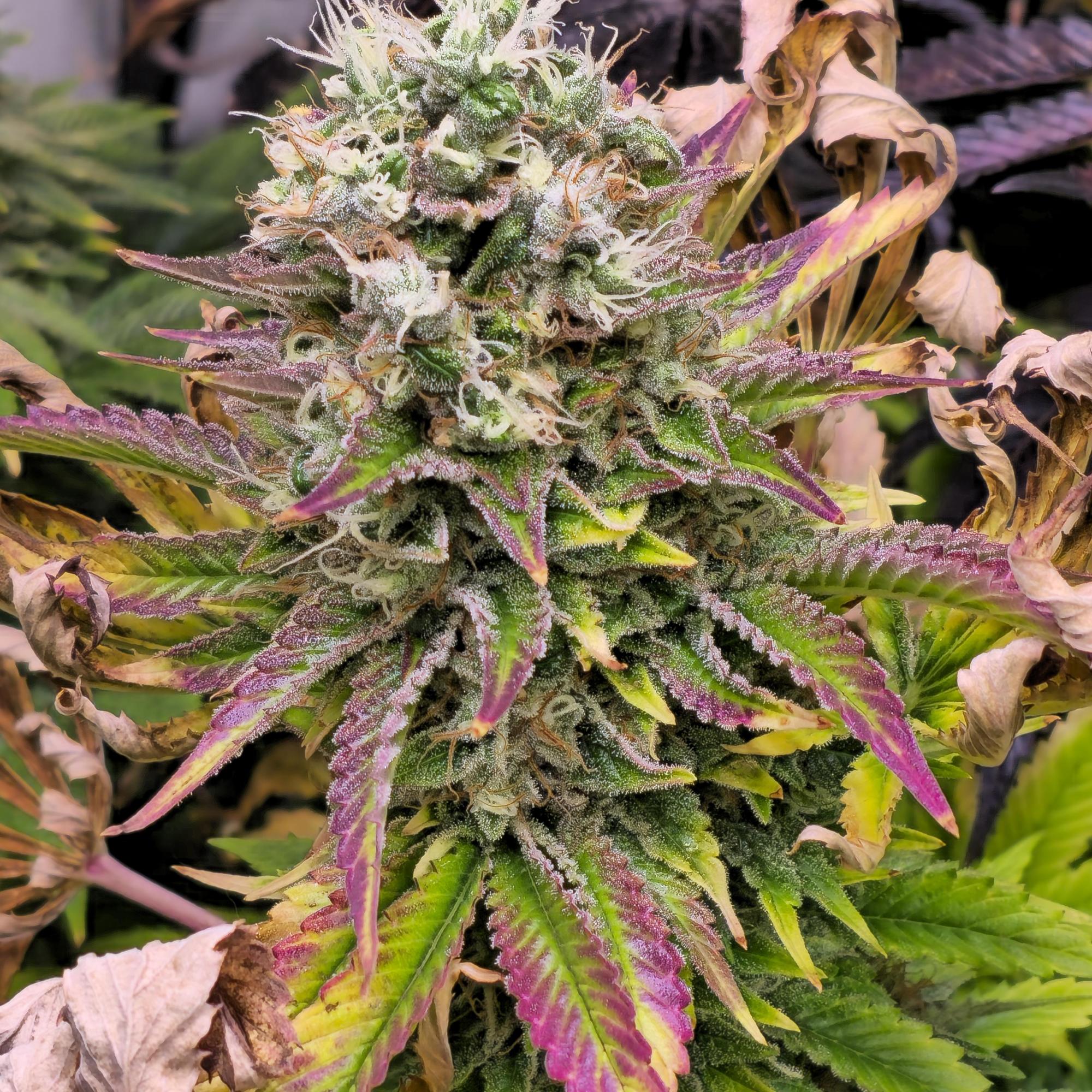 Purple Punch is an Indica-dominant hybrid (80/20), bred by Barneys Farm. These bushy and rather short plants don’t require too much space, they are forgiving and easy to grow. Purple Punch, developed by crossbreeding Grand Daddy Purps with the classic strain Larry OG, is less sensitive to pests and diseases than most strains and offers high yields after a short-than-average flowering period. Expect a blueberry-dominated aroma with herbal hints of earth and grapes. The sweet taste is enriched by vanilla, some sour pungency, and a dessert-like flavor profile. The high delivered by Purple Punch knocks you out immediately. As euphoria fills your head, you’ll be launched into a joyous state of pure bliss and happiness. It won’t take long before you’ll feel your body giving in to this wave of supreme relaxation and sedation, leading to a deep and refreshing sleep. The most serious reported side effect is anxiety, especially with higher doses. This strain shows impressive therapeutical potential, especially for treating stress, depression, and sleeping disorders such as insomnia.