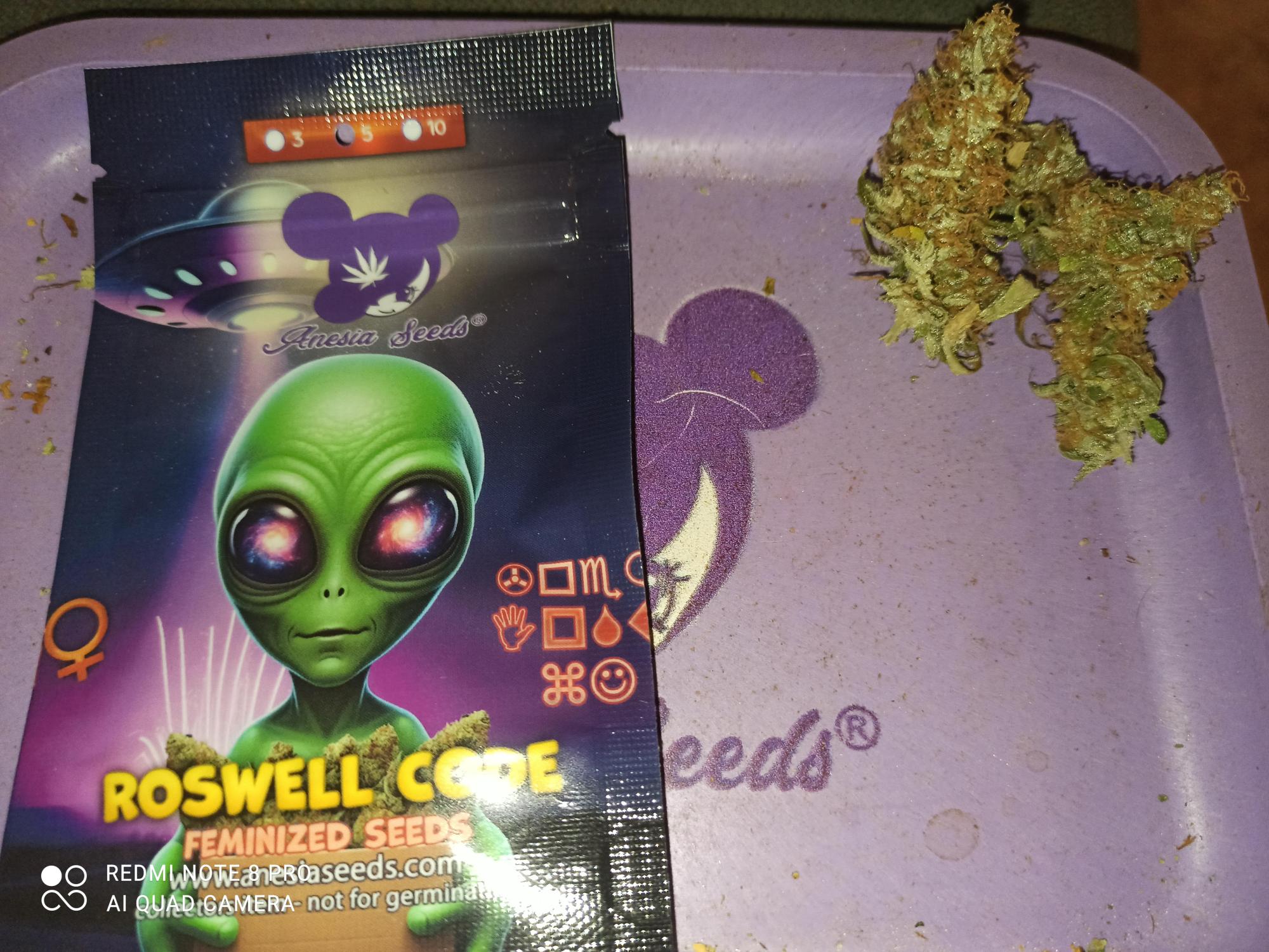 Roswell Code is a remarkable Indica-heavy hybrid that stands out with its almost unbelievably high average THC content of 39%, making it one of the most potent strains on the planet. Anesia Seeds created this sought-after cultivar by crossbreeding Chimera Cut with Roswell 47. Both novice and seasoned growers are bound to instantly fall in love with these plants, as they produce generous yields in the range of 625g/m² after no more than 55 days of flowering, while being surprisingly easy to cultivate and forgiving of newbie mistakes. They grow tall, making regular pruning and topping crucial to guide things in the right direction, and benefit from LST and some support for the heaviest-bearing branches. Flavor-wise, Roswell Code delivers a lingering blend of fruitiness, spicy herbal notes, and lemon that finishes things off masterfully. The Roswell Code high comes on almost instantly with uplifting effects and waves of downright euphoria, while your body starts to give in to a weighted sense of sedation that ultimately brings sleepiness in its wake. Its mind-boggling potency and these long-lasting effects make Roswell Code a go-to strain for experienced medical patients suffering from insomnia, spasms, and chronic pain.