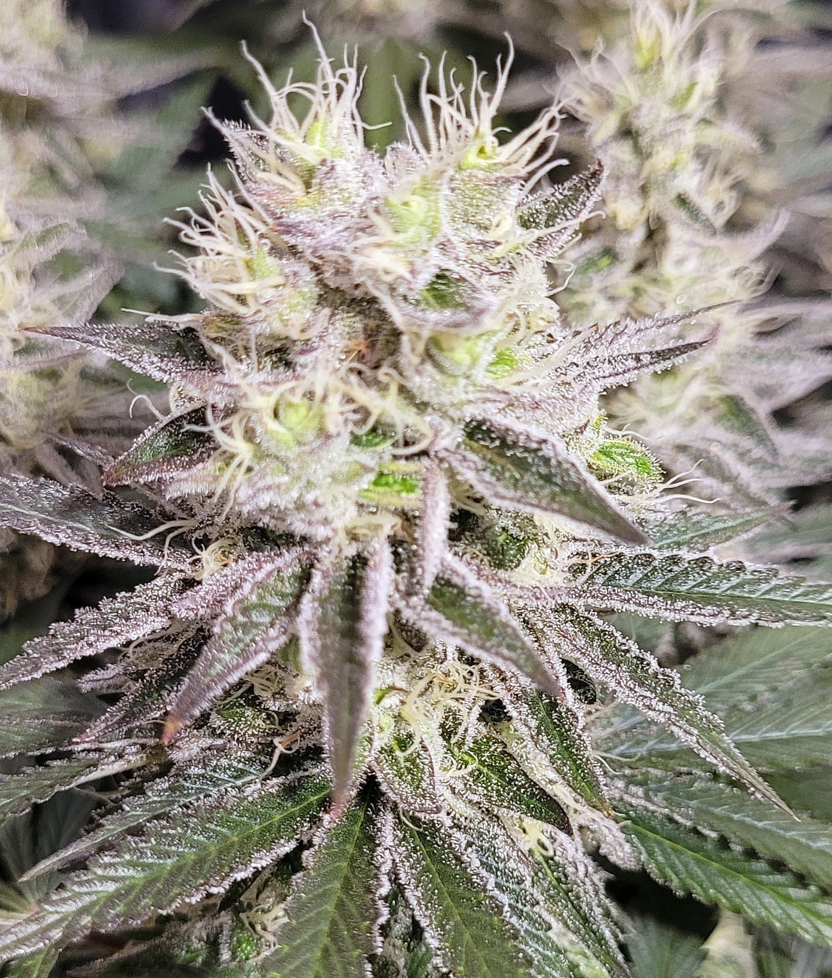 Highly Sativa dominant, Tropicana Cookies is a great choice for those who need a little push to achieve their daily goals. Created through crossing GSC and Tangie, this beauty packs a high THC content that can reach up to 28%. The flavor of Tropicana Cookies is described as smooth and citrusy. Sour lemony notes along with the sweetness of cookies make this plant a real treat for the taste buds. The aroma is just as delicious as a potent orange overtone, which accentuates the earthy pine with hints of pungent spices. Tropicana’s Cookies high is fast to come and will get you in the best mood possible. In the beginning, you’ll feel your spirits lifted into a state of pure happiness as a spike in energy levels will get your creative juices flowing. The body high manifests as a calming and relaxing veil that descends over you with little to no sedating effects. Due to its high THC content, many medical users reported improvements in conditions such as nausea, lack of appetite, stress, anxiety and depression. If you plan to grow Tropicana Cookies, then expect to be rewarded with minty green buds with purple undertones and a generous layer of purple-tinted trichomes. Suitable for both indoor and outdoor configurations, this plant may be labelled as easy to grow thanks to its resilience and versatility. At the end of the 8 to 10 weeks of flowering, expect to harvest moderate to high yields: 400-600g/m2 indoors and up to 800g/plant outdoors.