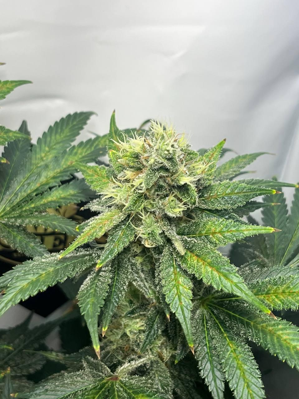 White Widow is one of the most popular hybrid in the world of cannabis. Bred from South Indian Indica with Brazilian Sativa landraces, this strain has been a household name since the early 1990s and was amongst the first cannabis strains to reach global popularity, partly due to its references in the music world. It was, and still is, so popular that even today can be found in all, if not most, coffee shops around the world. This is a very easy-to-grow strain that got its name due to the insane amounts of white resin that covers the buds near harvest time. It is an excellent strain for beginner growers since it can be successfully grown in any type of medium, both indoors and outdoors, with great success. Despite the relatively low THC levels of around 15%, the high is quite potent. The uplifting effects quickly spread throughout your body, leaving you energetic and creative while still maintaining mental awareness, making it a great strain for outdoor activities. It is especially recommended for patients treating anxiety, stress, fatigue, and PTSD. In terms of smell, expect a mix of citrus fruit and pine that comes together with a strong earthy background, exactly what you would from old-school terpene profiles.